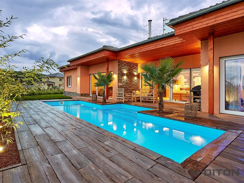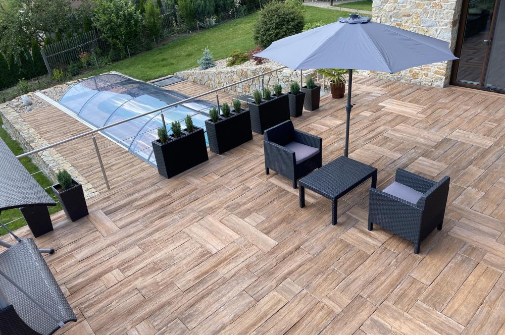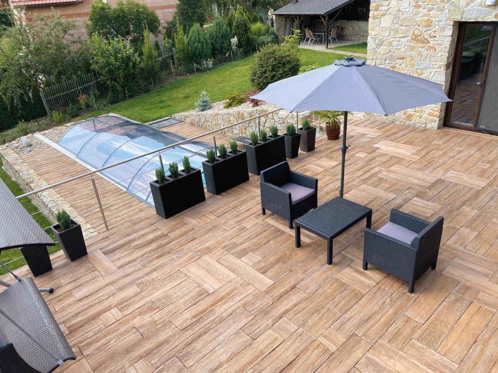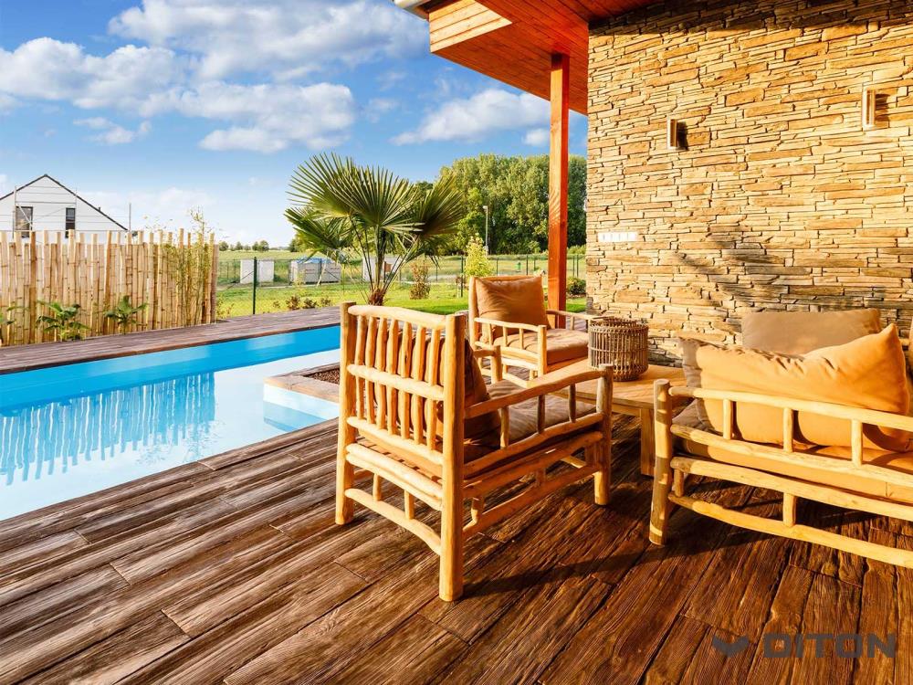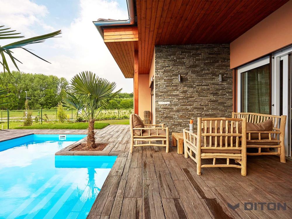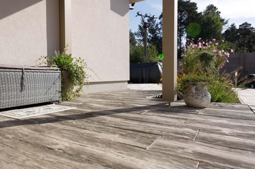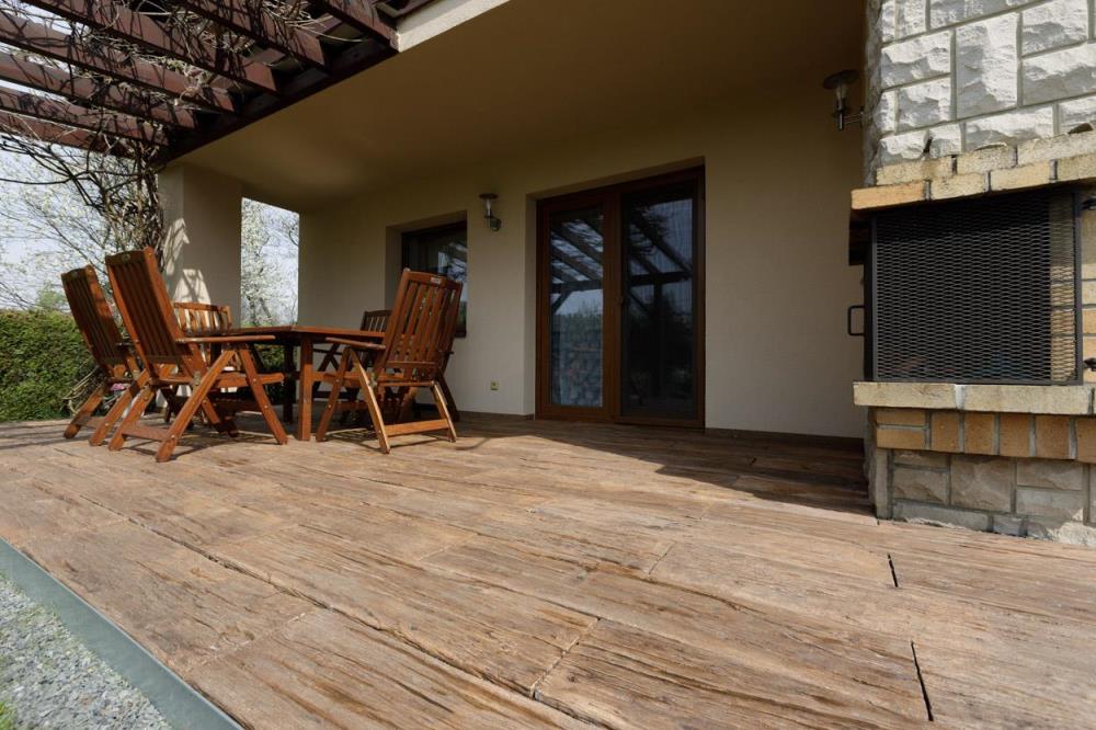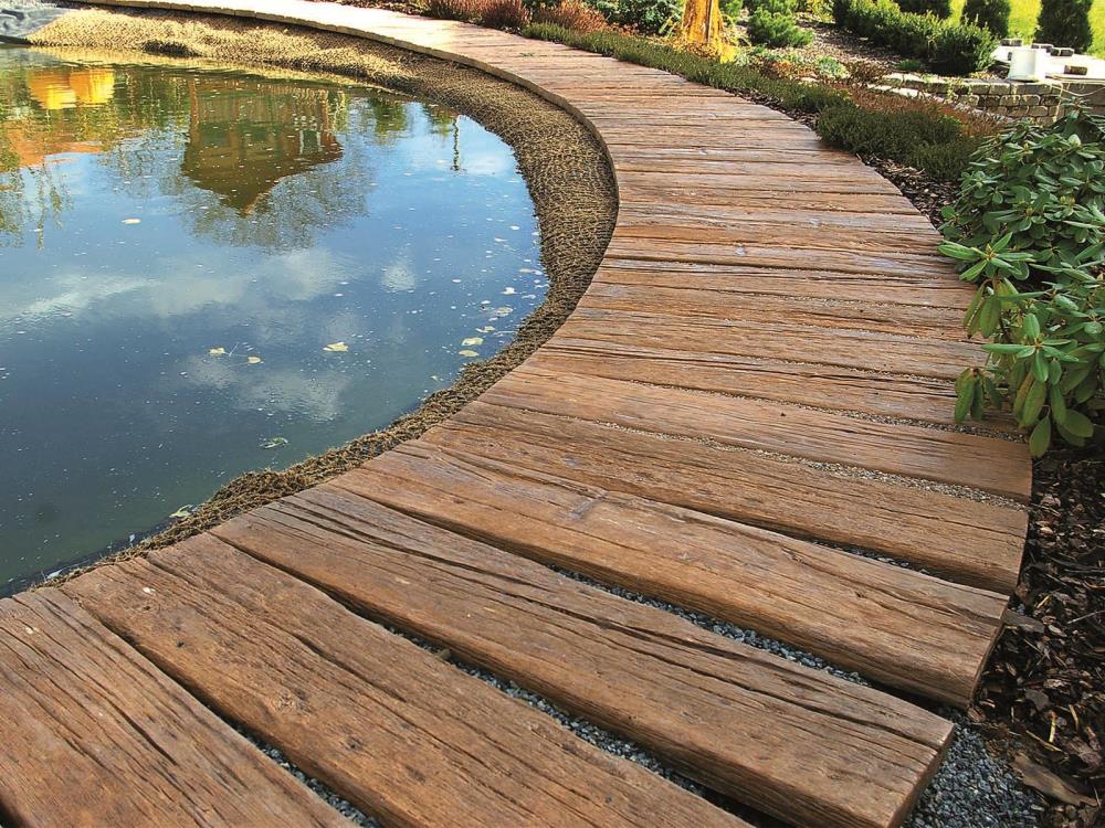 PRKNA – VZOR DUB z programu IMITACE DŘEVA nabízejí snadné, ale přitom mimořádně elegantní řešení v podobě dokonale napodobených dubových prken. Prkna ve čtyřech formátech a třech barevných odstínech nabídnou zahradě či domu krásu dřeva s praktickými vlastnostmi betonových výrobků. Díky speciální povrchové úpravě již není nutné povrch lakovat, ani jinak speciálně ošetřovat. VZOR DUB charakterizuje oproti PRKNU SMRK hrubější struktura s hlubším reliéfem. Pro prkna této produktové řady jsou k dispozici rovněž bazénové lemy.