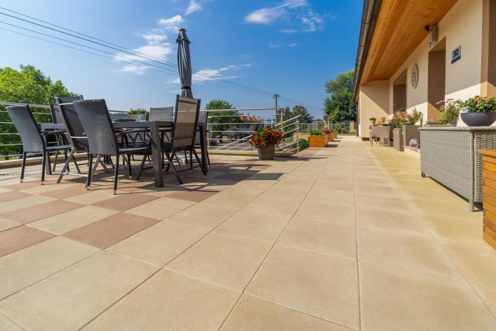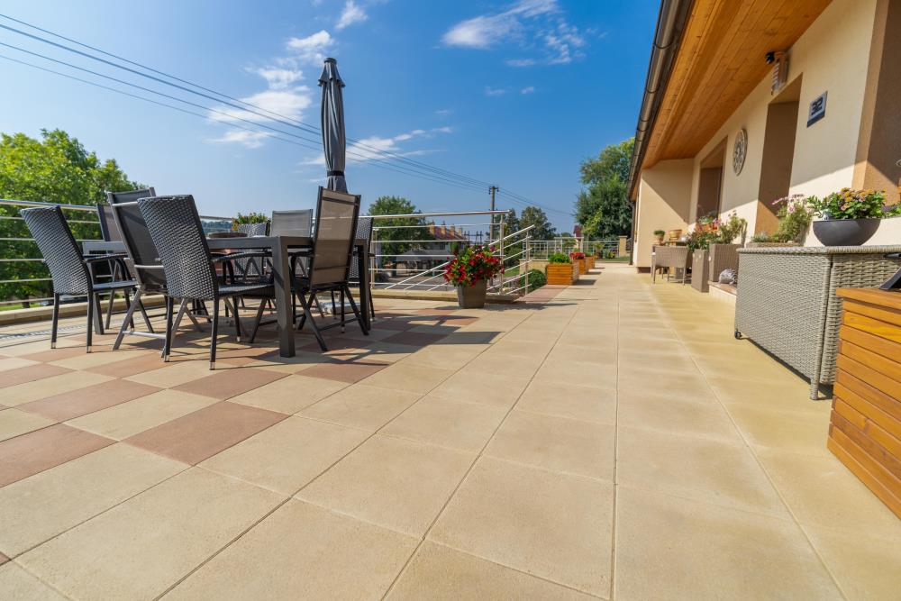 - PRAKTIK: méně namáhané zpevněné plochy jako jsou terasy, okolí rodinných domů, pěší stezky, zahradní chodníčky apod. Dlažební prvky nejsou určeny na pojezd vozidel.