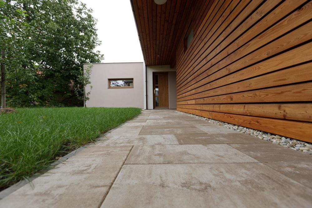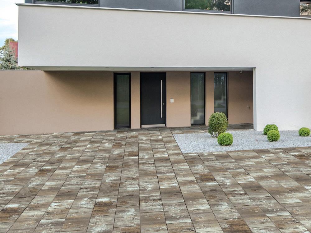 Pochozí venkovní dlažba STADIO v jediném formátu 60 × 30 cm díky svému luxusnímu vzhledu splní vaše nejnáročnější požadavky i požadavky moderní architektury. Zákazníci a projektanti mohou vybírat z sedmi populárních colormixů nebo jednolitého elegantního odstínu creme-noir. Tato betonová plošná dlažba je ideální na chodníky, posezení nebo bazénové terasy. Nabízí pokládku jak na střih, tak na vazbu s posunem o polovinu nebo třetinu délky.