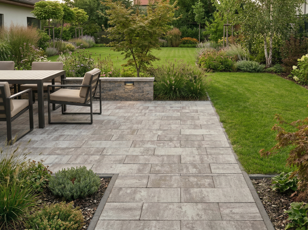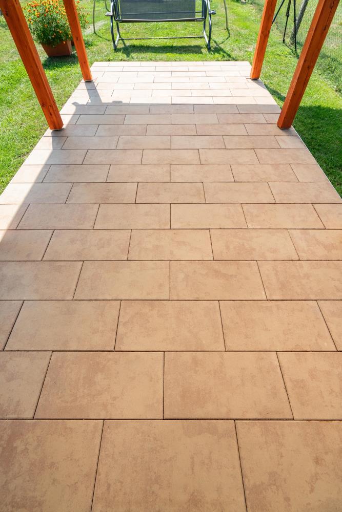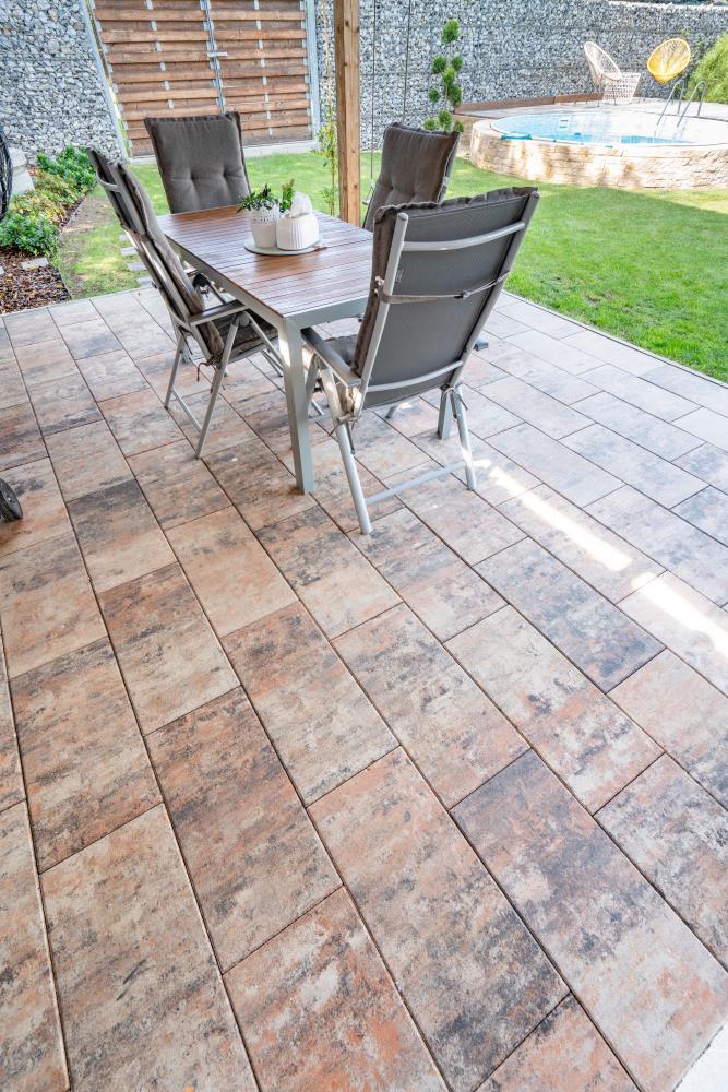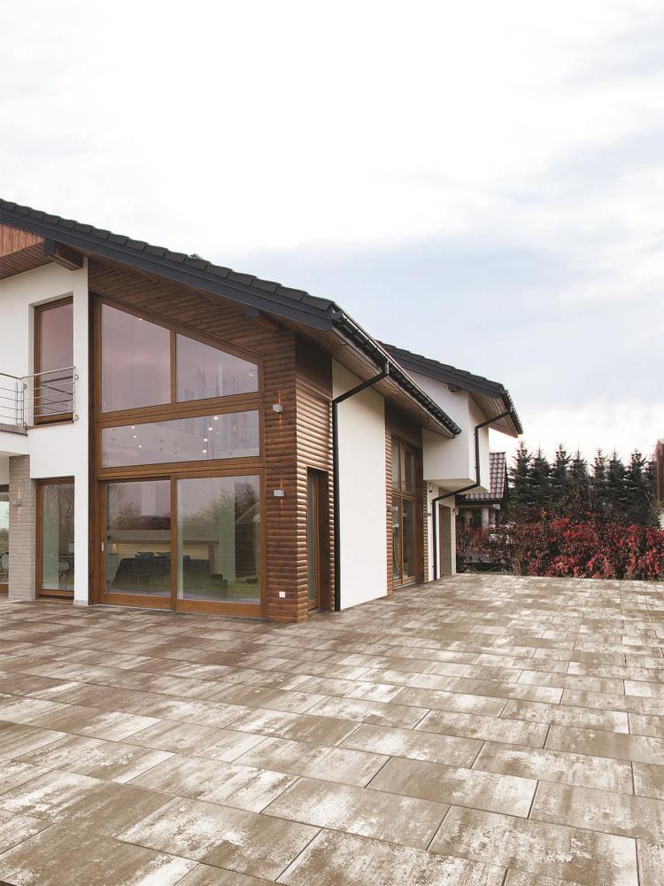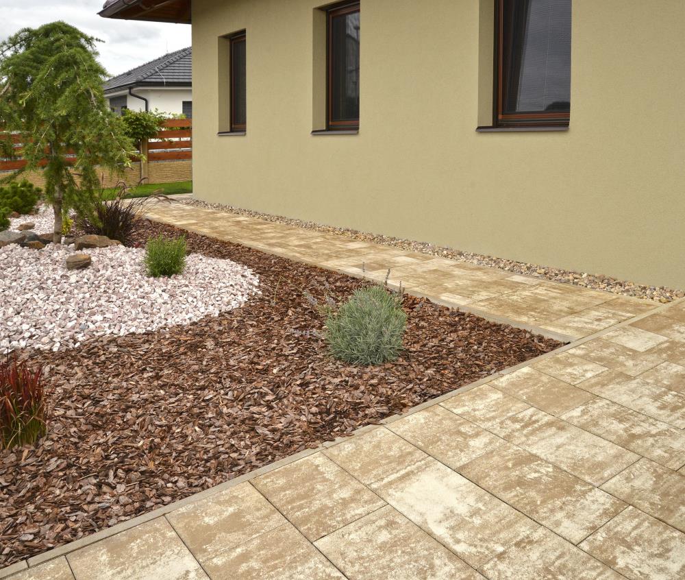 - STADIO: méně namáhané zpevněné plochy jako jsou terasy, okolí rodinných domů, pěší stezky, zahradní chodníčky apod. Dlažební prvky nejsou určeny na pojezd vozidel.