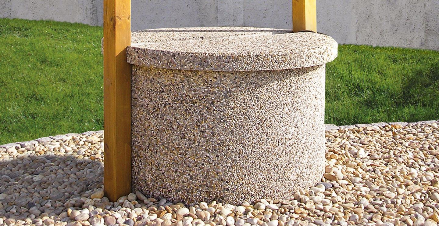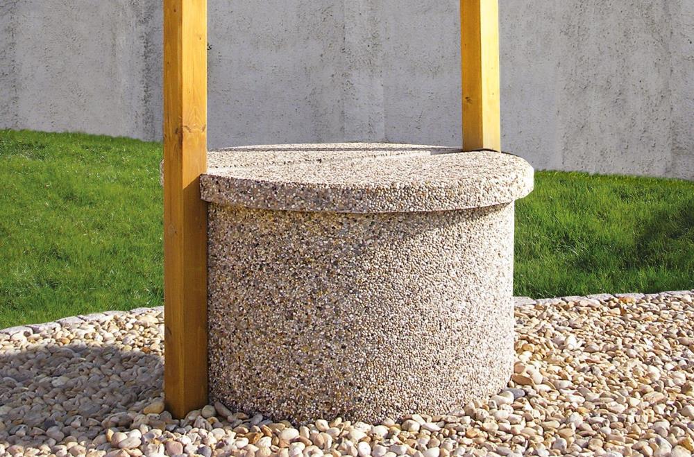 I ze studny lze udělat esteticky působivý doplněk. Stačí použít dekorativní vymývané skruže a zákrytové desky – poklop na studnu, které můžete snadno sladit s výsečemi, nášlapy a dlažbami, neboť jsou k dispozici ve stejných barevných provedeních.