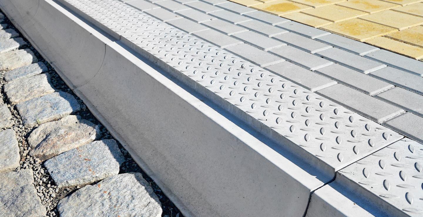 • ZASTÁVKOVÉ OBRUBNÍKY: vnitřní a venkovní dopravní plochy. Oddělení, fyzikální nebo vizuální rozlišení, opatření pro odvodnění nebo začlenění dlážděných ploch nebo jiných povrchů.