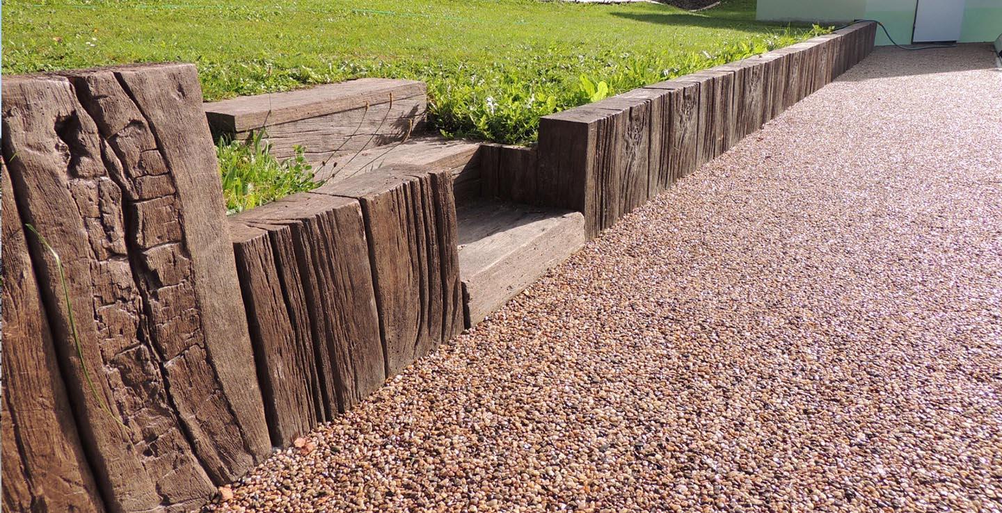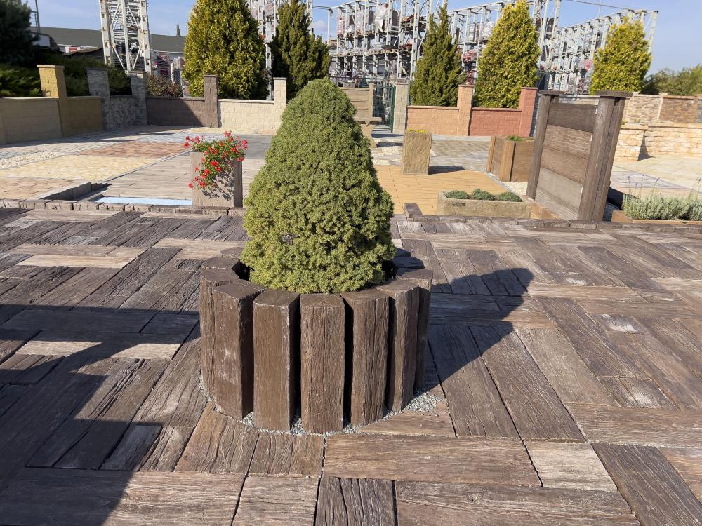 - PALISÁDY – VZOR DUB: pro provádění terénních úprav, vytvoření stupňů teras, budování terénních schodišť, stavbu opěrných zídek a zakončení dlážděných ploch.
