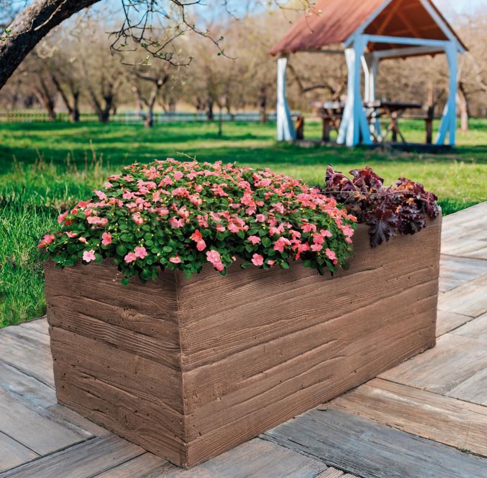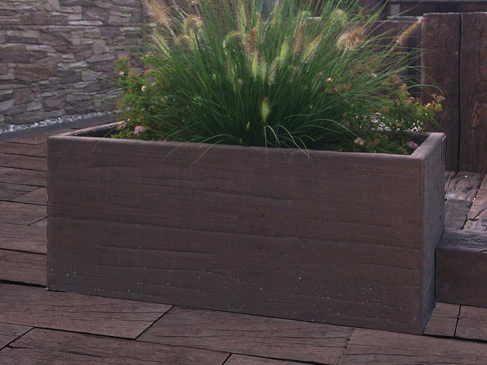 Zeleň v praktickém betonovém květináči oživí zahradu, terasu u domu nebo i předzahrádku restaurace. Betonový venkovní květináč ve VZORU DUB skoro nerozeznáte od přírodního dubového dřeva. Má hrubší strukturu a poměrně hluboký profil. Přes svou vyšší hmotnost se dají betonové květináče s drobnými pomůckami snadno přemístit, takže je můžete na zimu přesunout do temperovaného prostoru. Betonové květináče však využijete celoročně, protože jsou mrazuvzdorné. Nabízíme dva modely – truhlík naležato a květináč na výšku. Betonový květináč v provedení VZORU DUB patří do programu IMITACE DŘEVA podobně jako VZOR NATUR PATINA. Vyberte si z provedení DUB ARKTIC, DUB SVĚTLÝ a DUB TMAVÝ.