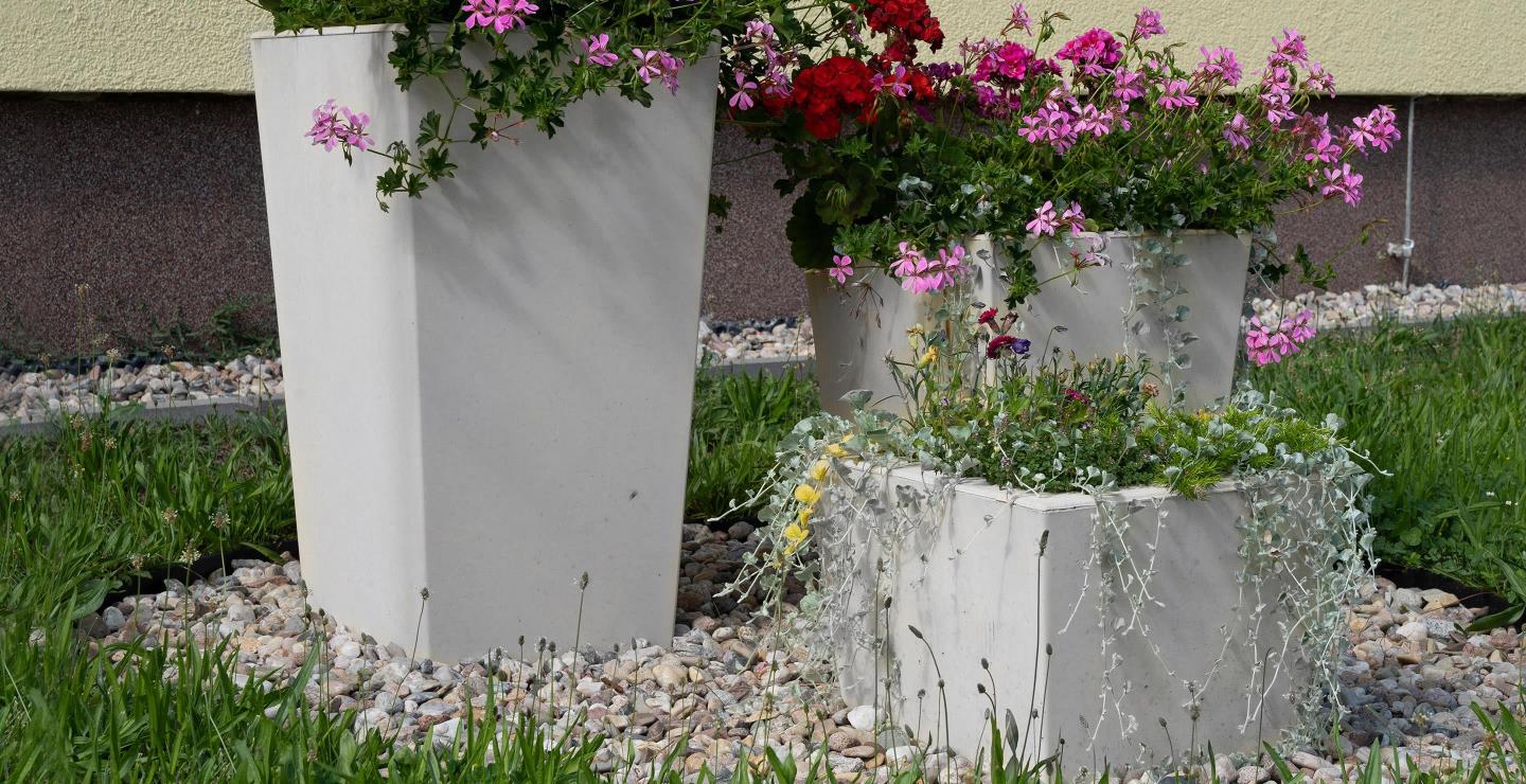 - KVĚTINÁČE VINCI: tento druh prefabrikovaných nenosných prvků a příslušenství se může použít ve veřejných i soukromých plochách jako zahrady, parky, hlavně pro ztvárnění prostředí.
