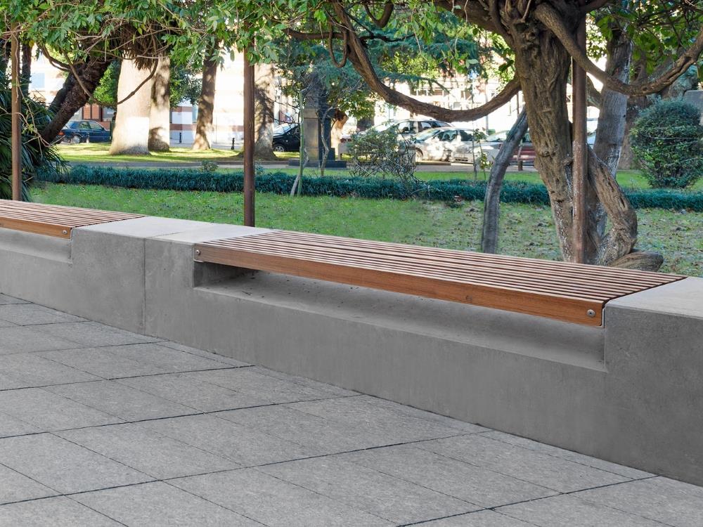 Sestava mobiliáře PATRIOT splňuje požadavky na odolnost vůči povětrnostním vlivům a hrubému zacházení. To z tohoto venkovního mobiliáře činí ideální volbu pro veřejné prostory. Takový městský mobiliář obsahuje sedák, lavici a lavici s dřevěným sedákem. Betonové lavice ocení veřejnost pro své hladké, nenápadné tvary a robustní konstrukci. Navíc lavice s dřevěným sedákem dodává parkovému či městskému mobiliáři příjemný a vizuálně útulný charakter. Tyto lavičky městského mobiliáře PATRIOT tak upoutají pozornost svou kvalitou a designem.